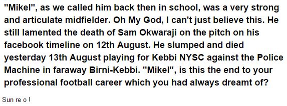 Home / News From Nigeria / Local News / Graphic Photo: A Corper passes On while Playing on The Pitch