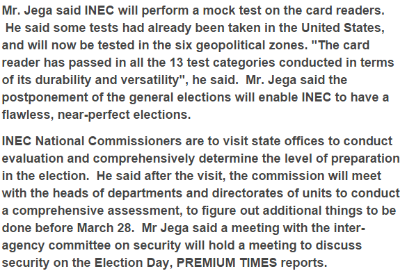 At a gathering with Senators Wednesday, Mr. Jega said he couldn’t submit himself to the “sacredness” of March 28 and April 11 – dates for the rescheduled Nigeria’s general decisions. He said the electing commission couldn’t promise parts of the elections that are outside its ability to control. Mr. Jega met with the legislators to audit the choice to delay the elections from February.