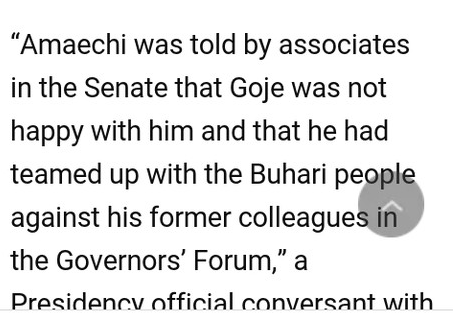 …Vanguard learned, yesterday, that besides geopolitical interests, the removal of the Lagos – Calabar rail project from Budget 2016 was done partly to spite Amaechi supposedly for distancing himself from his former colleagues in the Senate, notably senators Bukola Saraki and Danjuma Goje. “Amaechi was told by associates in the Senate that Goje was not happy with him and that he had teamed up with the Buhari people against his former colleagues in the Governors’ Forum,” a Presidency official conversant with the issue said.