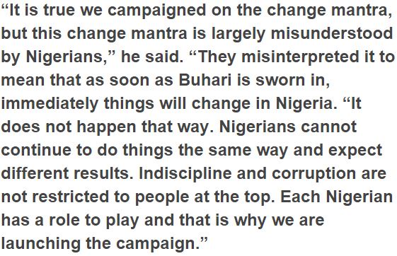 Lai Mohammed, minister of information and culture, says Nigerians are “to a great extent misunderstanding” the change mantra of the All Progressives Congress (APC). Talking on Monday amid an intuitive session with individuals from the Advertising Association of Nigeria (ADVAN), a relationship of showcasing chiefs of corporate associations, Mohammed sued for understanding.