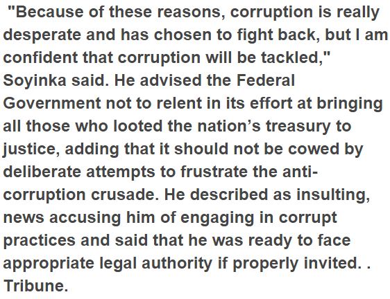 Home / News From Nigeria / Breaking News / Nigeria Has Never witness This Type Of Corruption Being Exposed Before – Soyinka