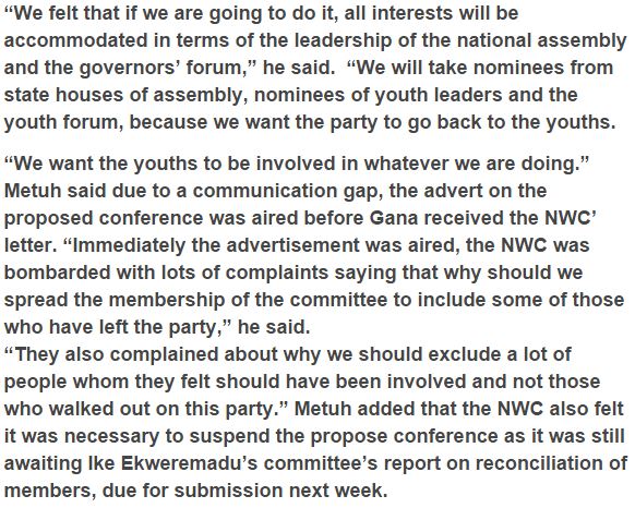 Olisa Metuh, national publicity secretary of the Peoples Democratic Party (PDP), says there is no issue between the National Working Committee (NWC) of the pary and the partners panel proposing a meeting on changes. The NWC had suspended the activities’ of the stakeholders drove by Jerry Gana, powering hypotheses that all is not well in the previous ruling party. In any case, tending to the issue on Thursday, Metuh said the suspension of its proposed national meeting was to suit all hobbies within the gathering.