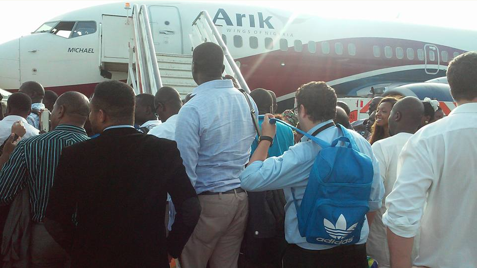 So Arik air has decided to take us back to stone age. Once upon a time when Air Passengers dependably battle to secure seat. This one is Flying Molue OMG!! In this 21st century. Here is what Ooduarere gathered, more than 150 tickets were purportedly sold by Arik for an airplane that can’t take up to that number of travelers. So subsequent to deferring flights without expressions of remorse, they tossed open the entryways of the airplane for the survival of the fittest, Molue style…. Lol! THis is falling of our hand in the 21st century.. Na wah oh !