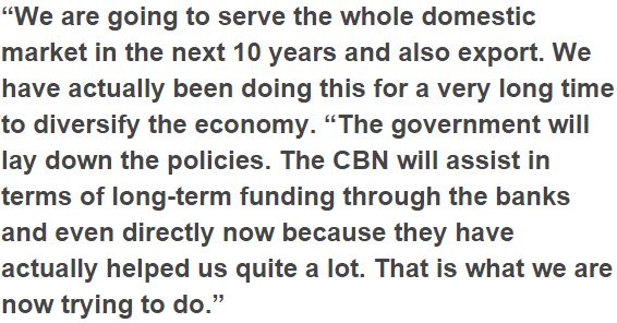 Dangote said he had been working with the administration and the national bank of Nigeria (CBN) in diversifying the economy.