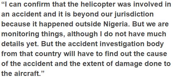 The chopper is said to be owned by a Nigerian government official from the Niger Delta.