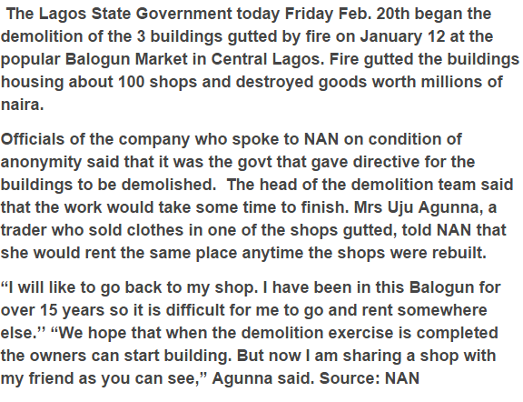 Home / News From Nigeria / Local News / Photos: Lagos State Govt begins demolition of burnt Balogun market