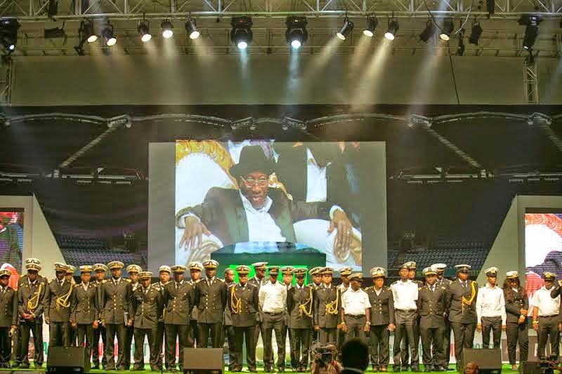 At “An Evening with the President of the Federal Republic of Nigeriaon Sunday night in Lagos, President GoodluckEbele Jonathan, GCFR was presented with an Heritage Bank’s Cheque of N10 Million Naira by Mr Moses SilokoSiasia (Chairman, NYPF) on behalf of the Nigerian Young Professionals to support families of Fallen Hero’s andidentify with the Nation’s Armed Forces at this time of frequent attacks by the insurgent.