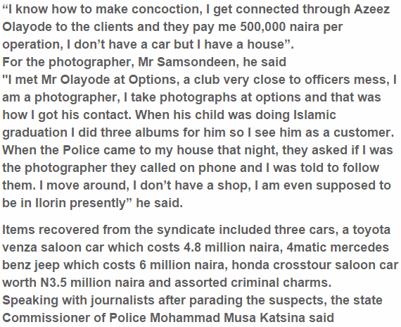 A fake Ifa Chief Priest, 419 syndicate that is good at misdirecting ailing individuals from general society with bogus cases of having otherworldly powers to recuperate them of their illnesses and afterward take from them, have been captured and paraded by the Oyo state police summon at the state police central command in Ibadan. The men who stole as much as N30million from their victims were paraded on Friday June 12th.