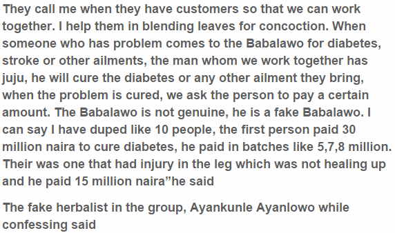 A fake Ifa Chief Priest, 419 syndicate that is good at misdirecting ailing individuals from general society with bogus cases of having otherworldly powers to recuperate them of their illnesses and afterward take from them, have been captured and paraded by the Oyo state police summon at the state police central command in Ibadan. The men who stole as much as N30million from their victims were paraded on Friday June 12th.