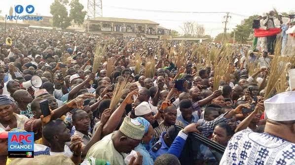 The APC vice-presidential hopeful was in Okene, Kogi State for the party’s battle yesterday and supporters turned out as a group .