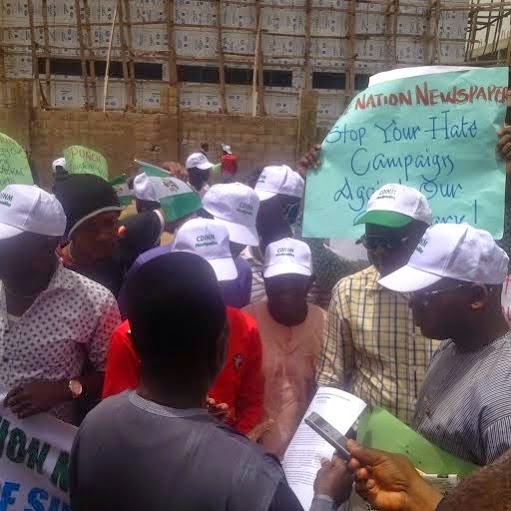 Here are selective photographs at the picketing of some media associations by a society gathering called Citizens in Defense of the Integrity of Nigerian Military (CDINM) in Abuja today March fifth.