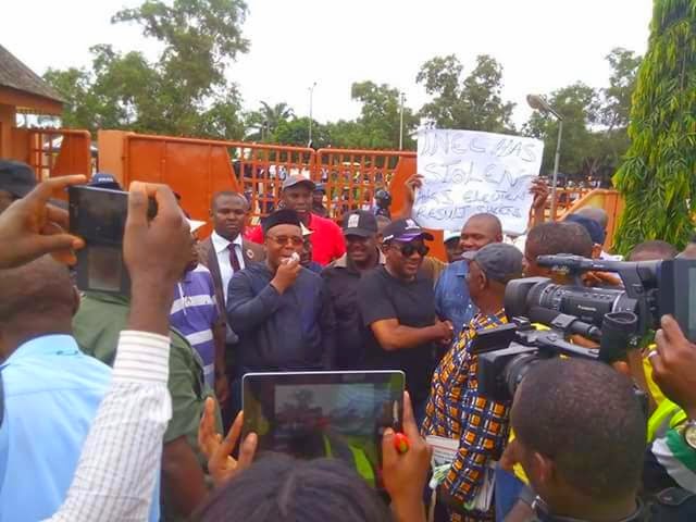 The APC in Akwa Ibom State took to the street today to challenge what they claim is enormous rigging in the state. The challenge was driven by the APC guber competitor in the State, Umana Okon Umana.