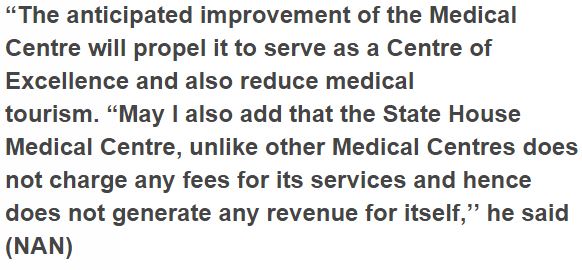 Tending to individuals from the Senate Committee on Federal Character and Inter-administrative Affairs, and individuals from the House of Representatives Committee on Special Duties in Abuja on Tuesday, Arabi unveiled that N3.2 billion of the financial backing was reserved for the overhaul of State House Clinic to Center of Excellence.