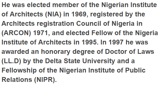 He was educated at Yaba Methodist School, and later Igbobi College where he was Head Boy in 1955. He won the Elder Dempster Lines Scholarship to go to the United Kingdom. After his secondary school education at Igbobi College, Ibru continued to the Nottingham School of Architecture in England where he qualified as a architect in 1962.