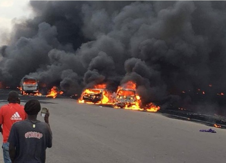 A fuel tanker exploded along Otedola Bridge, Lagos-Ibadan expressway. Over 20 cars burnt and an unknown number of people have been reduced to ashes.