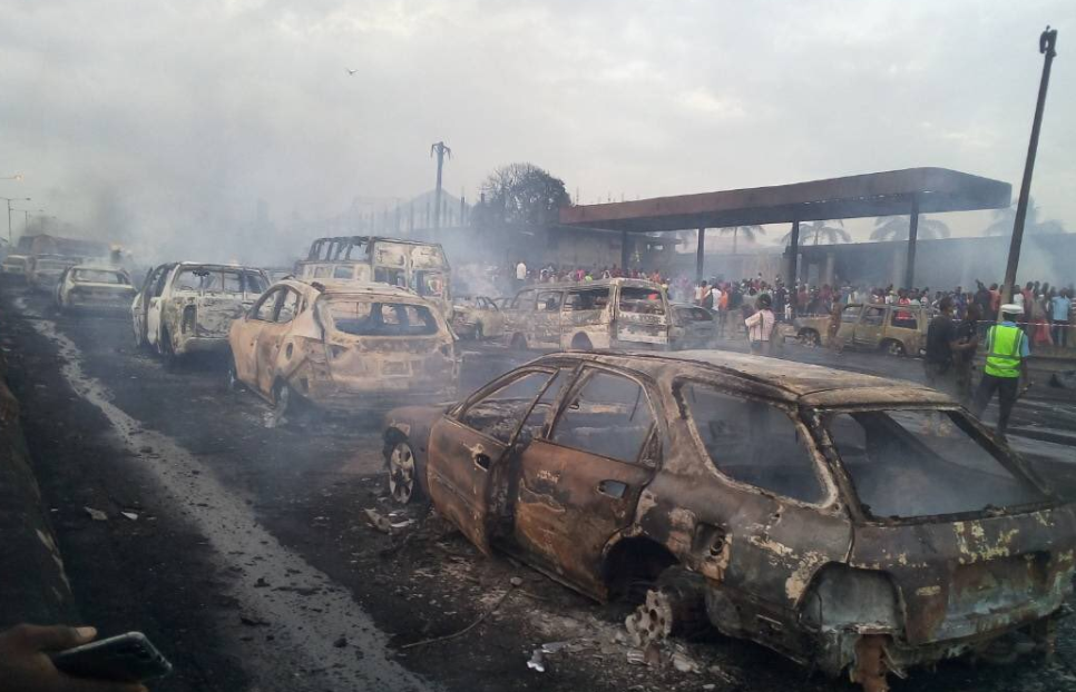 A fuel tanker exploded along Otedola Bridge, Lagos-Ibadan expressway. Over 20 cars burnt and an unknown number of people have been reduced to ashes.