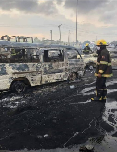 There’s a tanker explosion at Otedola/Ojodu Berger today and over 20 cars were reportedly burnt. The number of casualty in the incident is not ascertained but right now efforts already are in place as The Lagos Fire Service officers are spotted at the scene.