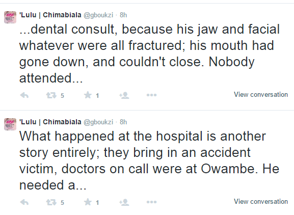A reader sent this lamentable story from Twitter, gentlemen. Simply read and be stunned. People had really abandoned the accident casualties cos they feared dealing the police, they were afraid of police case. Tweets continue after the bellow. Read tweets from bottom to top.