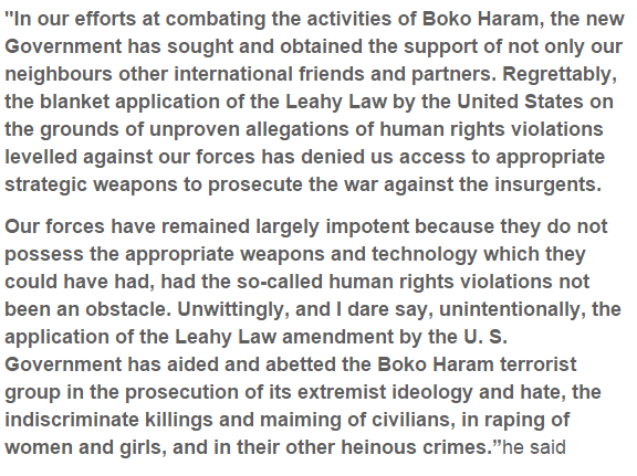 President Buhari says that the US is ‘supporting and abetting’ terror bunch Boko Haram by declining to supply arms to Nigeria. A US law called the Leahy Law keeps the US government from offering arms to nations which neglect to handle human rights abuses. President Buhari made the accusation while tending to individuals from the US Institute of Peace yesterday July 22nd