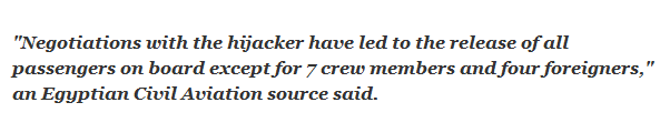 Egyptair says negotiated the release of all on board hijacked plane aside from four nonnatives and the crew. Travelers on the EgyptAir plane that was diverted to Cyprus included eight Britons and 10 Americans, three security sources at Alexandria airplane terminal said. Negotiations with the kidnapped result in the arrival of the considerable number of travelers, aside from the team and four foreigners.