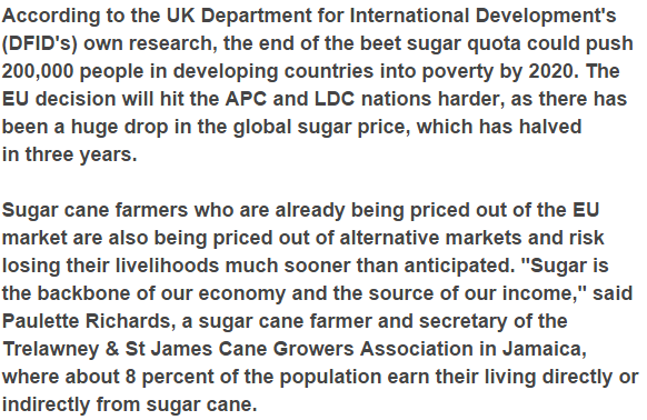 The choice by the European Union to lift the top on sugar beet generation by 2017, will mean little scale sugar stick agriculturists in Africa, Caribbean and Pacific (APC) and Least Developed Countries (LDC) — including previous British states such as Jamaica — will battle to compete with European sugar beet ranchers, who get subsidies from the EU.