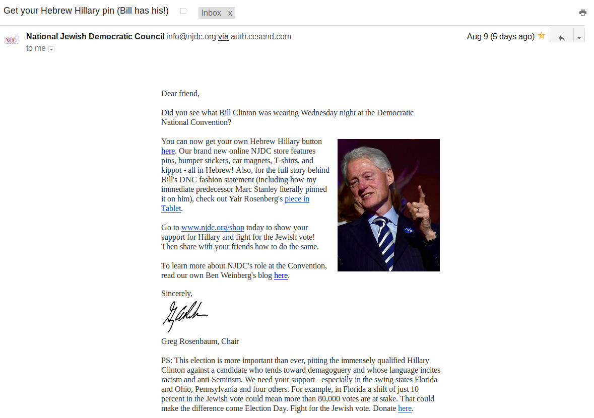 From the Saker’s mailbox: Get your Hebrew Hillary pin (Bill has his!)