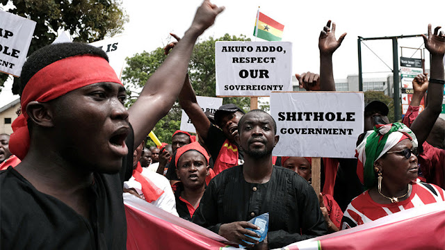 On Wednesday, massive demonstrations erupted in the capital, with people decrying both Ghana’s government and US President Donald Trump. Demonstrators held placards that read “Shithole government,” “Trump take your military base away.” “Ghana not for sale,” and “Ghana is better than $20 million.”