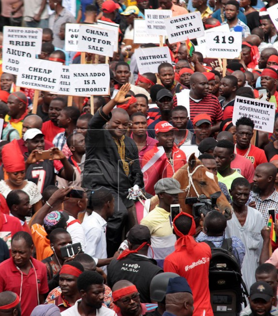 A woman was shot dead, and many others sustained gunshot wounds, yesterday night, that has not dampened spirits though as the whole capital has ground to a screeching halt since morning with a mammoth demonstration since morning led by General Secretary Asiedu Nketia (General mosquito ), former president President John Mahama, Eric Agbana, Ernesto Yeboah, Atik Mohamed and the nemesis of AFRICOM, Collins Dakurah himself.