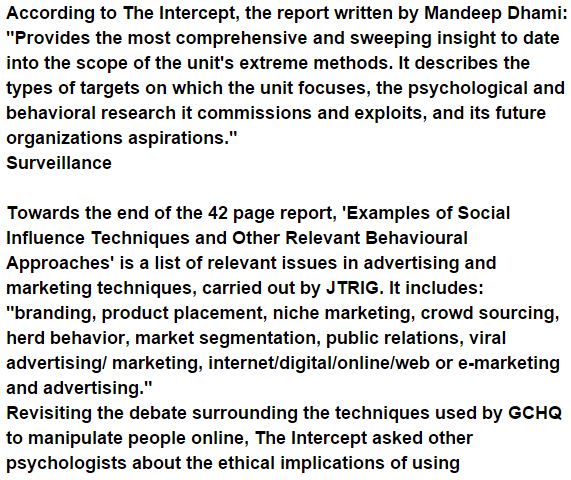 Exposed by WikiLeaks and published by The Intercept, the report ‘What UK spies do to you — in their own words’, was composed in 2011 by a psychologist and details the exercises of the Joint Threat Research Intelligence Group, also called JTRIG