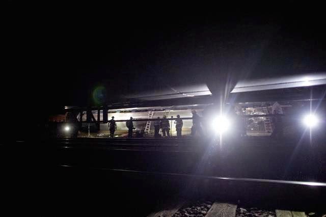 “They’re in pretty bad shape. You can see that they’re completely, completely derailed from the track. They’ve been destroyed completely. The aluminum shell has been destroyed and they’ve been overturned completely.”.