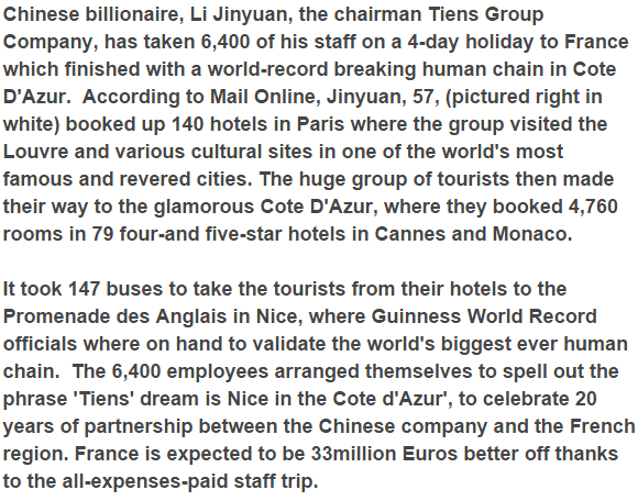 Posted by: BalogunAdesina in World News Comments Off on Photos: Chinese Billionaire trips 6,400 staff on holiday to Paris; costs him about $50m