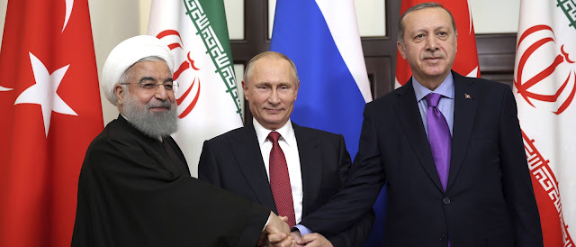 Last week the anti-imperial camp scored an major victory with the meeting between Presidents Putin, Rouhani and Erdogan in Sochi: they declared themselves the guarantors of a peace plan which will end the war against the Syrian people (the so-called “civil war”, which this never was) and they did so without even inviting the USA to participate in the negotiations. Even worse, their final statement did not even mention the USA, not once. The “indispensable nation” was seen as so irrelevant as to not even be mentioned.