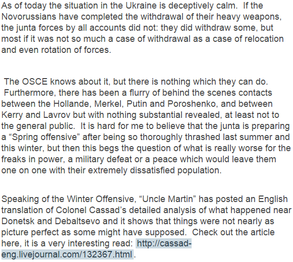 Ukraine SITREP Wednesday March 4th, 2015 – The Saker