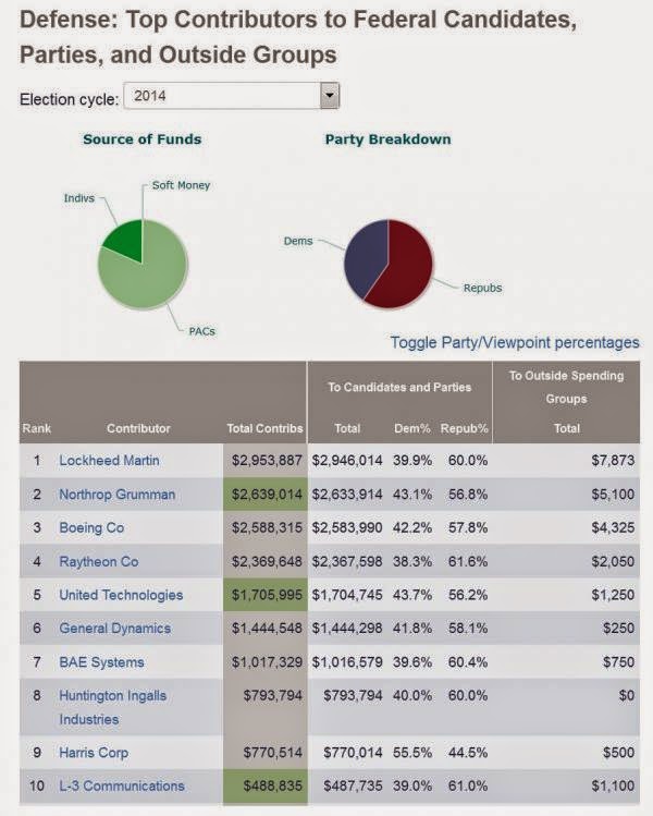 Then again, when it comes to calling the foreign shots, the US president is merely a figurehead, and the real decision-maker has always been the US military-industrial complex. So while Obama may stall sending weapons, he will ultimately get a tap on the shoulder from the gentle folks shown on the table below, who will soon demand something in exchange for their millions in lobby funding.