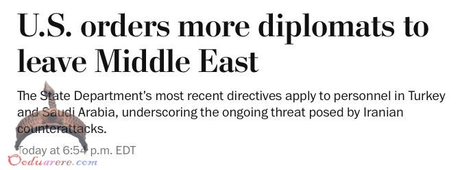 🇺🇸 WaPo | The U.S. is ordering more diplomats out of the Middle East including Turkey and Saudi Arabia now joining Bahrain, Kuwait, Baghdad, and Irbil.