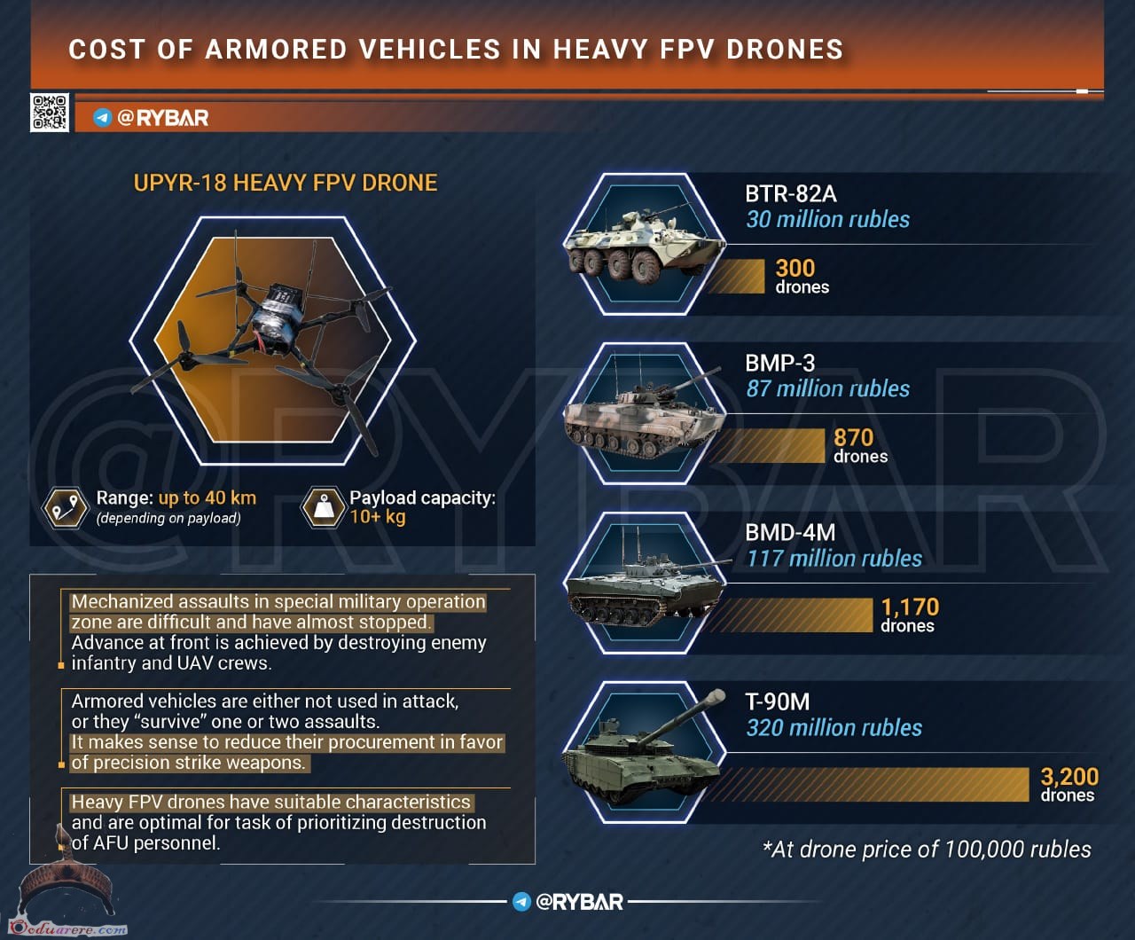 The drone is designed to destroy unarmored single and group ground targets of the enemy.