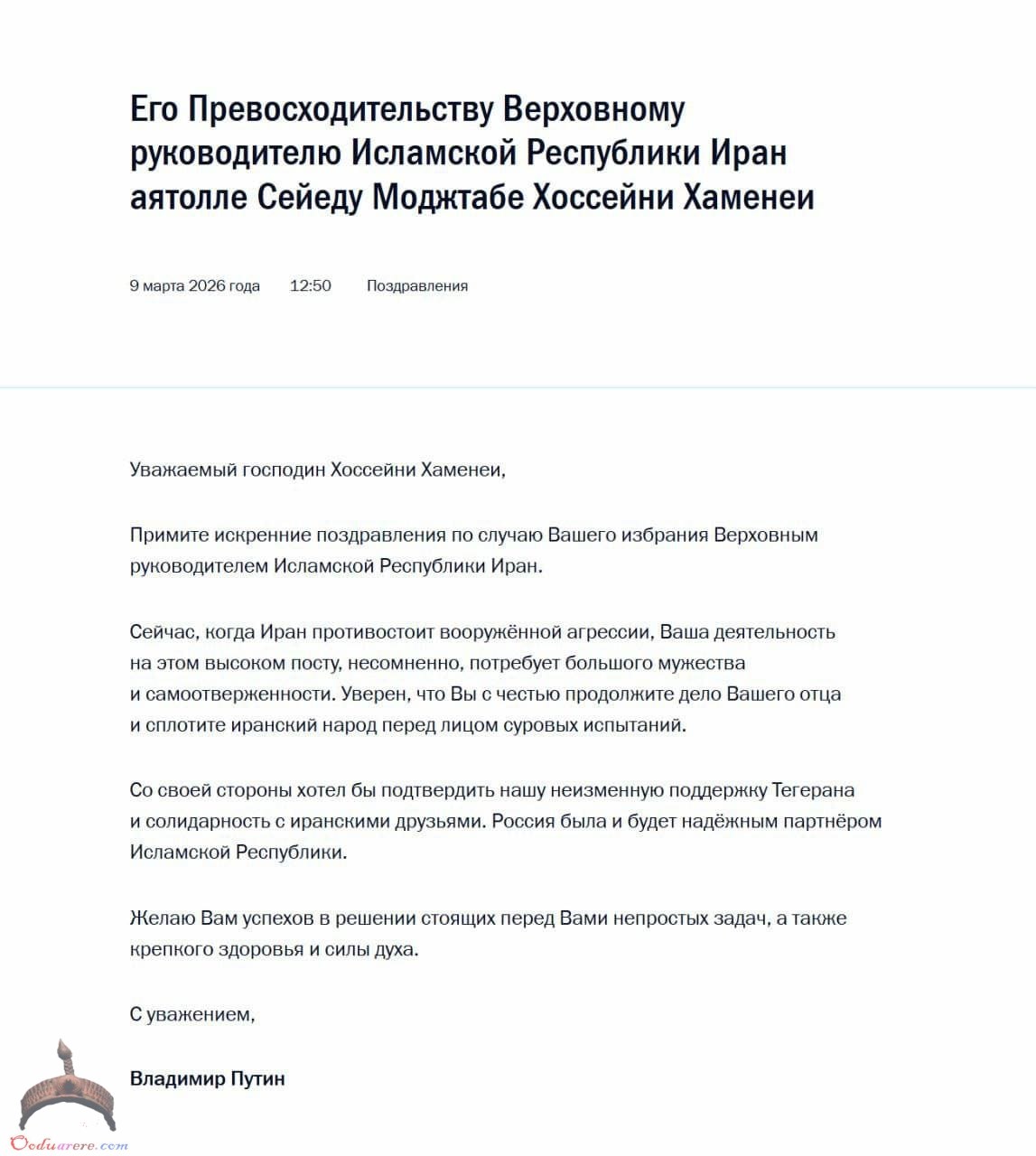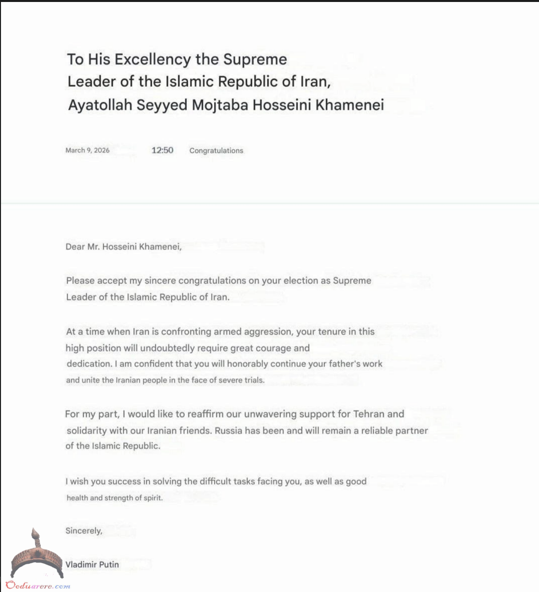 🇷🇺🇮🇷Putin officially congratulated the new Supreme Leader of Iran on assuming his position.
