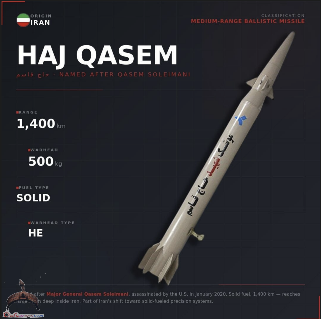 The Haj Qasem missile reflects Iran’s ongoing shift away from liquid-fueled Scud-derived systems toward solid-fuel precision missiles designed to be stored, moved, and launched with minimal warning.