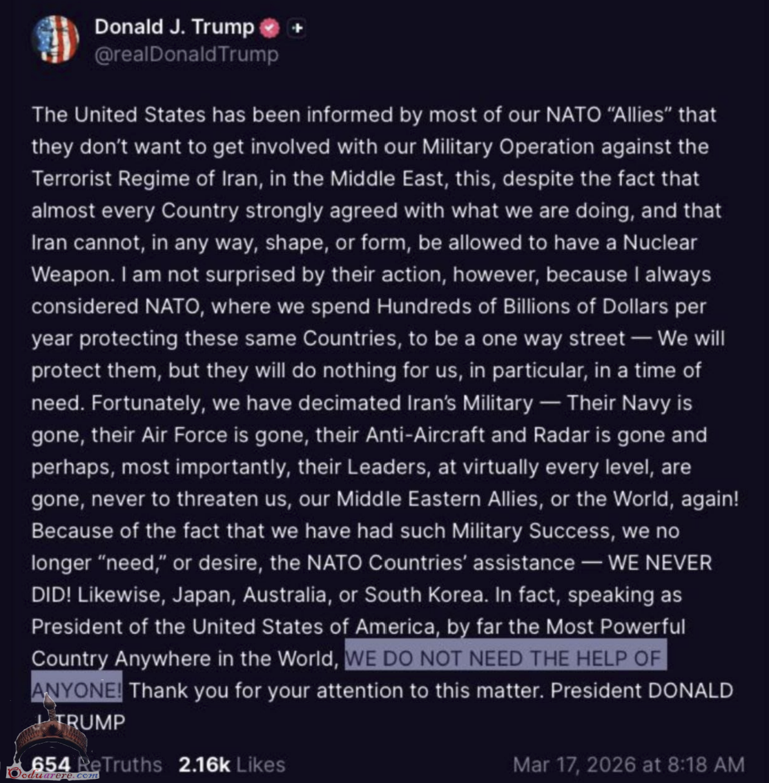 🇺🇸 Donald Trump seems to still be upset about the help he doesn’t need.