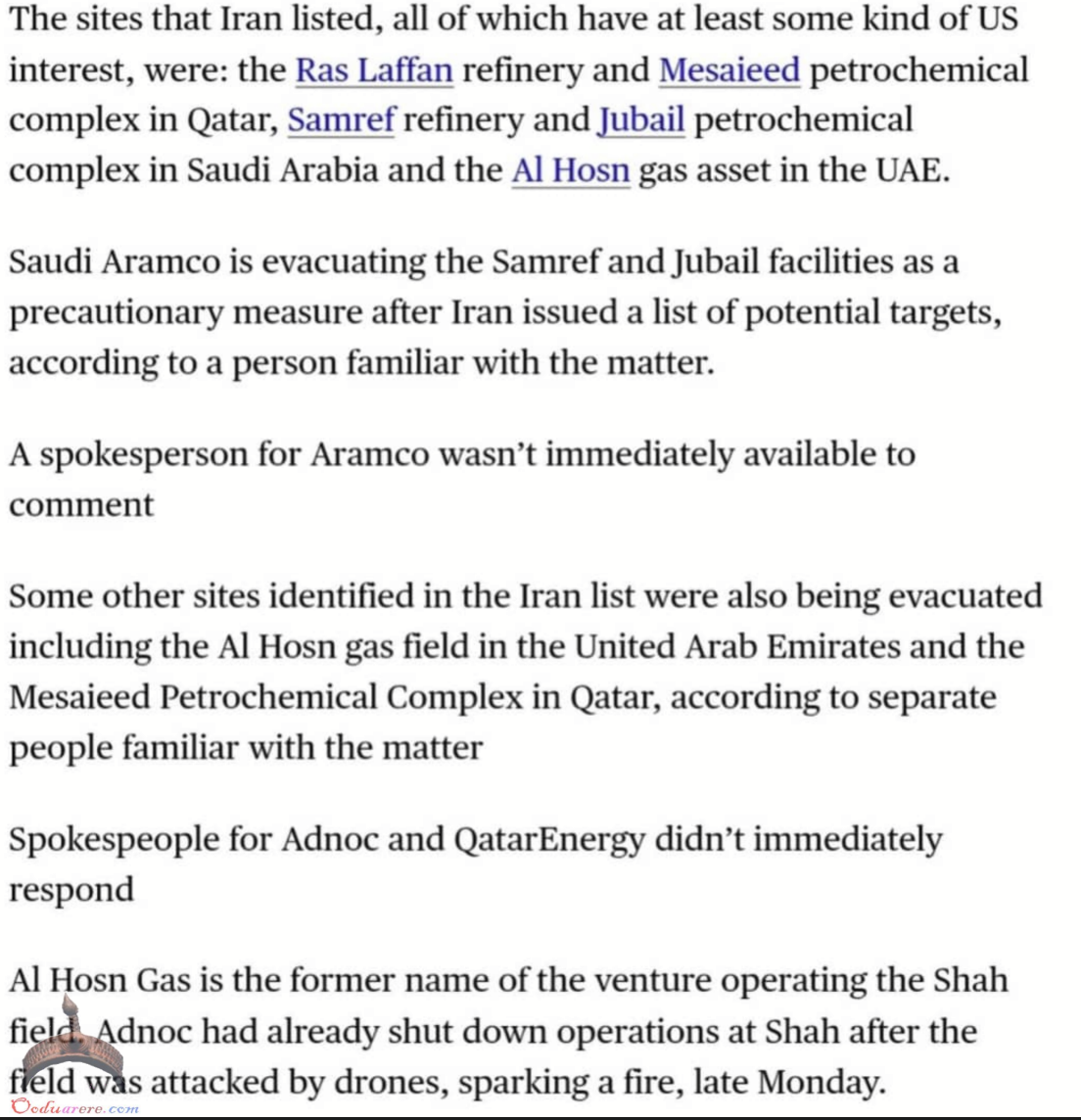 🇮🇷🇸🇦🇦🇪🇶🇦 Iranian media linked to the Islamic Revolutionary Guard Corps has issued an urgent warning to civilians near the following sites: