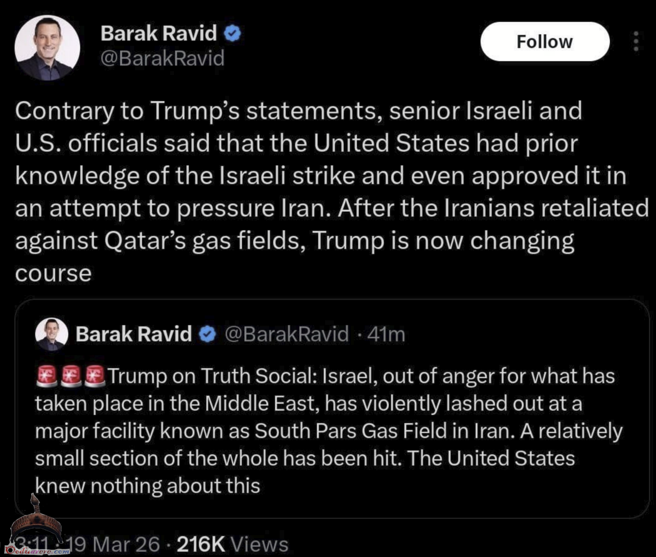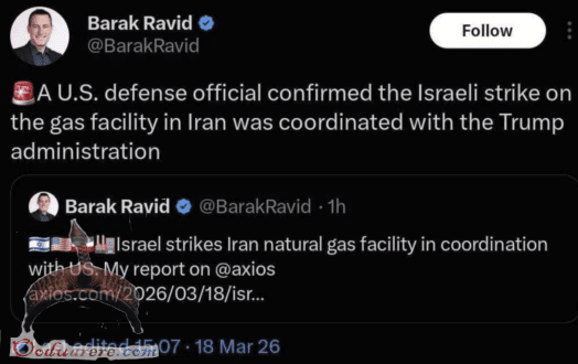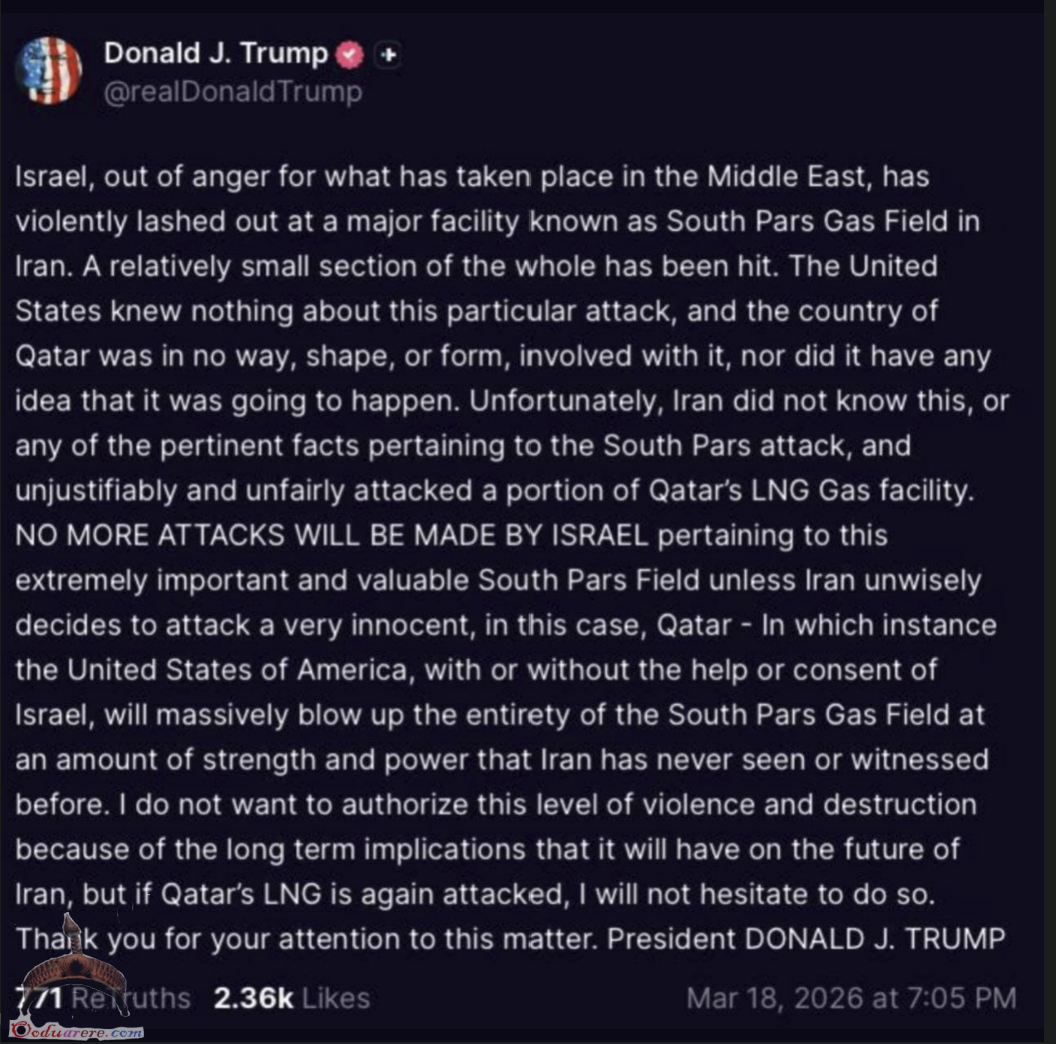 Trump says Israel attacked Iran’s South Pars Gas Field without US knowledge. Iran retaliated by hitting Qatar’s LNG facility, not knowing Qatar wasn’t involved.