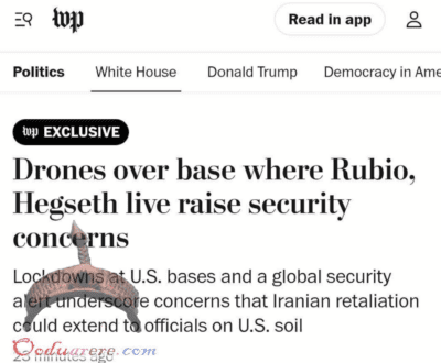 🇺🇸 BREAKING! Washington Post: U.S. officials detected unidentified drones over a Washington military base where Secretary of State Marco Rubio and Defense Secretary Pete Hegseth reside. Their origin remains unknown.