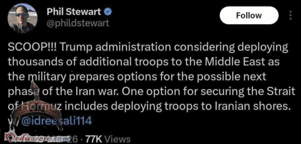 🇺🇸🇮🇱⚔️🇮🇷 The chief national security reporter for Reuters says the Trump administration is considering deploying thousands of additional troops to the Middle East.