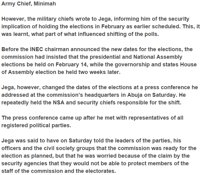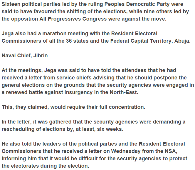 The surveys were charged for February 14 (presidential and National Assembly) and February 28 (governorship and House of Assembly).