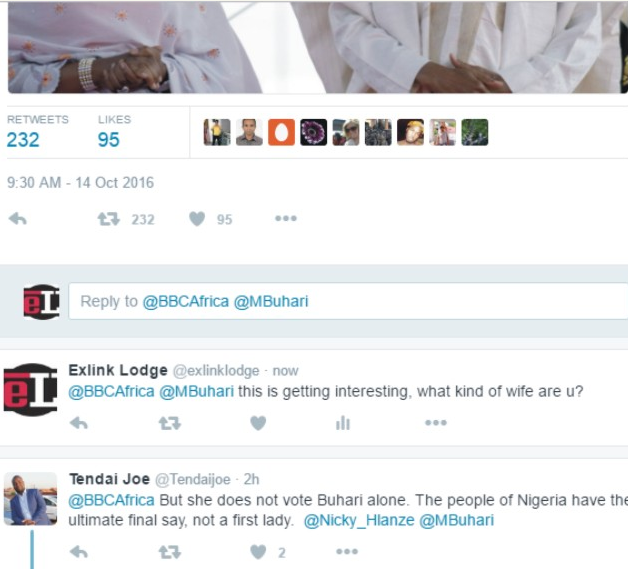 Many Nigerians are reacting to the controversial interview Aisha Buhari granted BBC Hausa recently where she spoke against a number of the members of her husband’s cabinet. Although some Nigerians applaud her honesty, others suggested that she shouldn’t have made her opinion public.