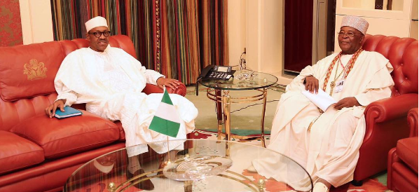 President Buhari receives Alake of Egbaland, Oba Michael Aremu Adedotun Gbadebo III, at the Presidential Villa.