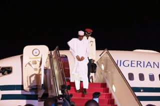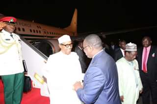 President Buhari arrives Senegal for security meeting. President Buhari arrives Dakar Senegal ahead of his Participation at the 3rd Edition of the Dakar International Forum on Peace & Security in Africa on 5th December, 2016.
