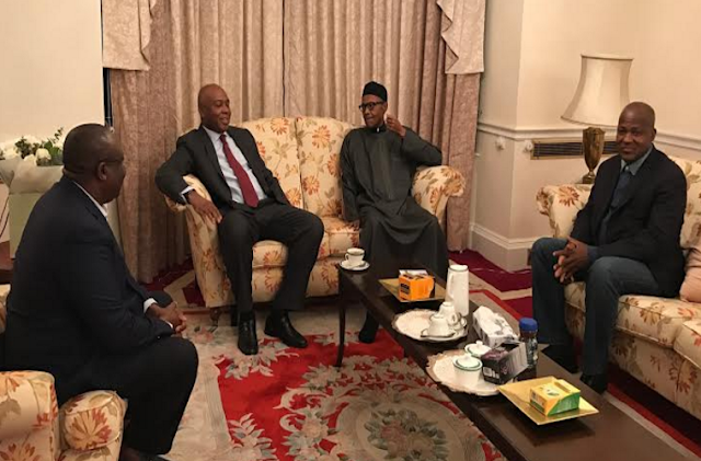 President Muhammadu Buhari has met with Senate President Bukola Saraki and the Speaker of the House of Representatives, Yakubu Dogara, at Abuja House in London.
