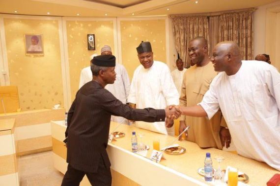 Home / News From Nigeria / Breaking News / Pics: Buhari’s Body Language as he meets with Saraki, Dogara over 2016 budget