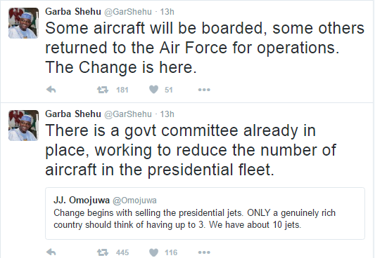 FG to reduce the number of aircrafts in the presidential fleet according to the Presidency.